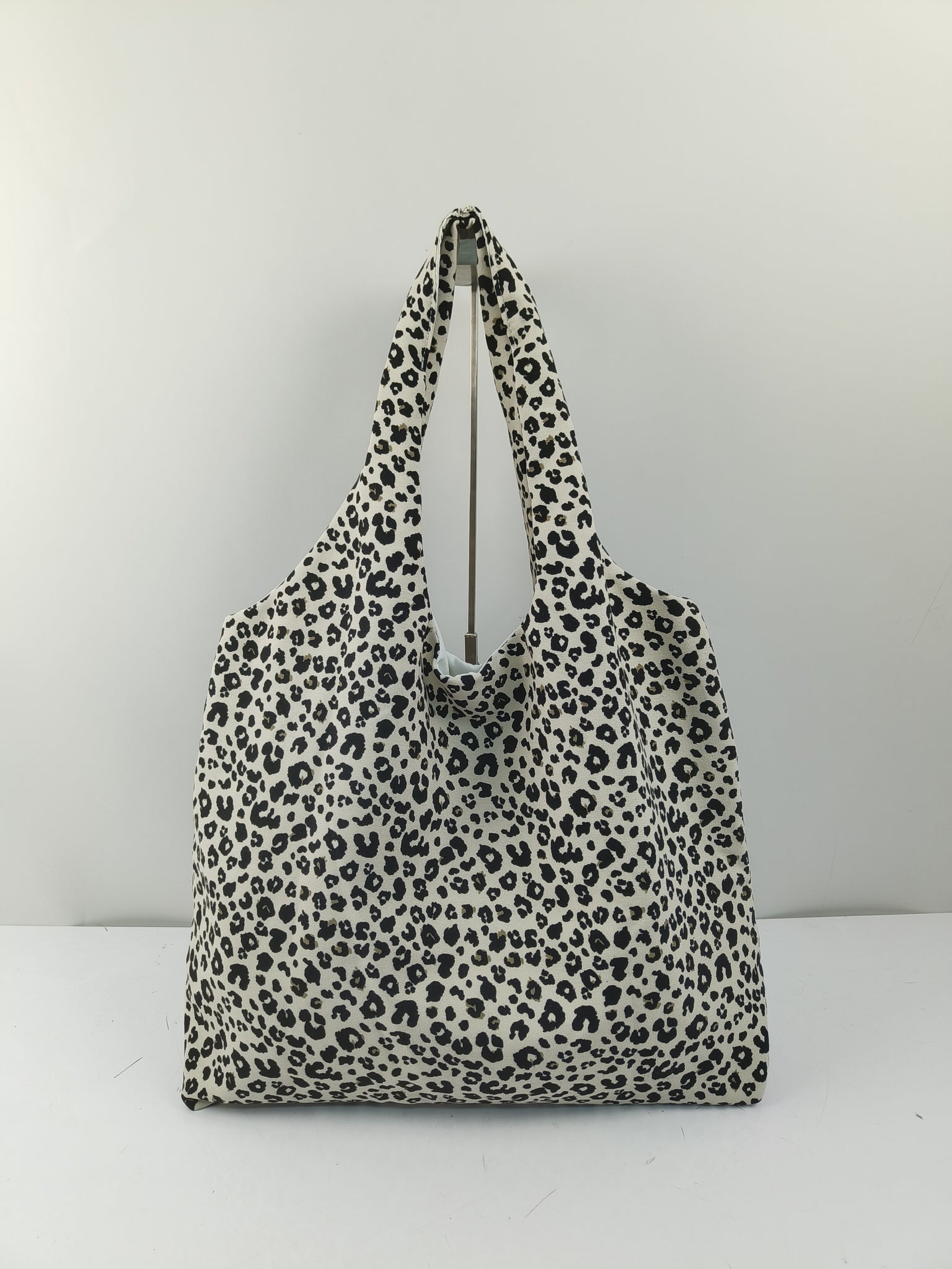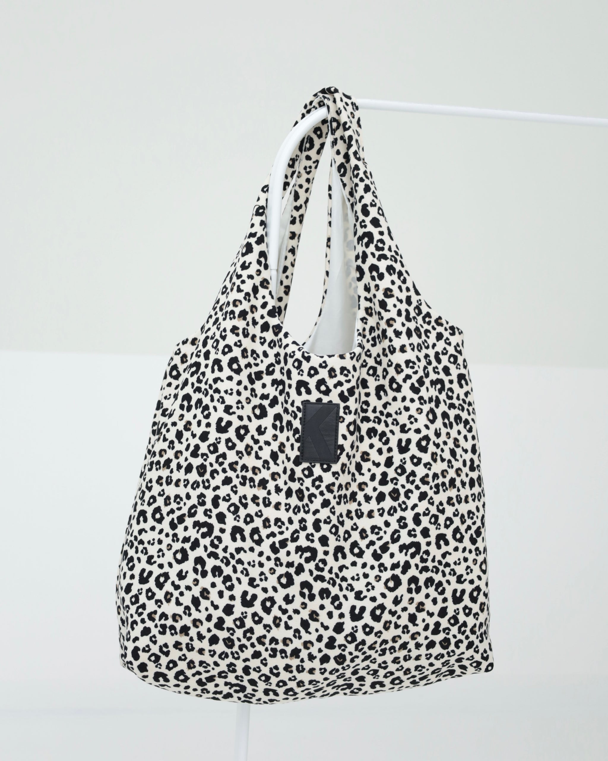 Diese Tasche kombiniert praktisches Format mit auffälligem Muster. Das robuste Material sorgt für Stabilität, während die weiche Form sie angenehm tragbar macht – ob im Alltag, beim Einkaufen oder unterwegs.